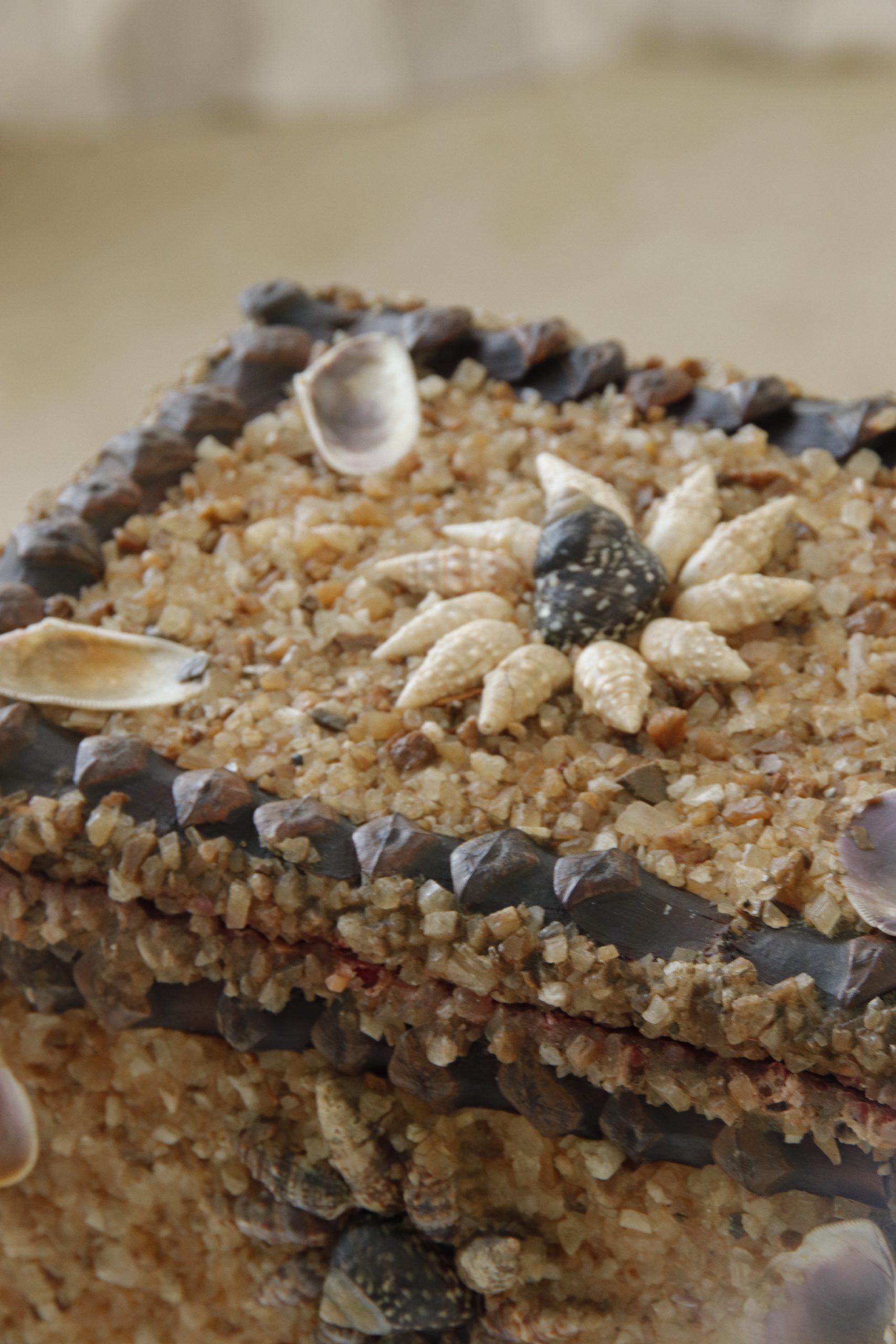 Matière : Coquillages, sable, écorces de pin, bois.