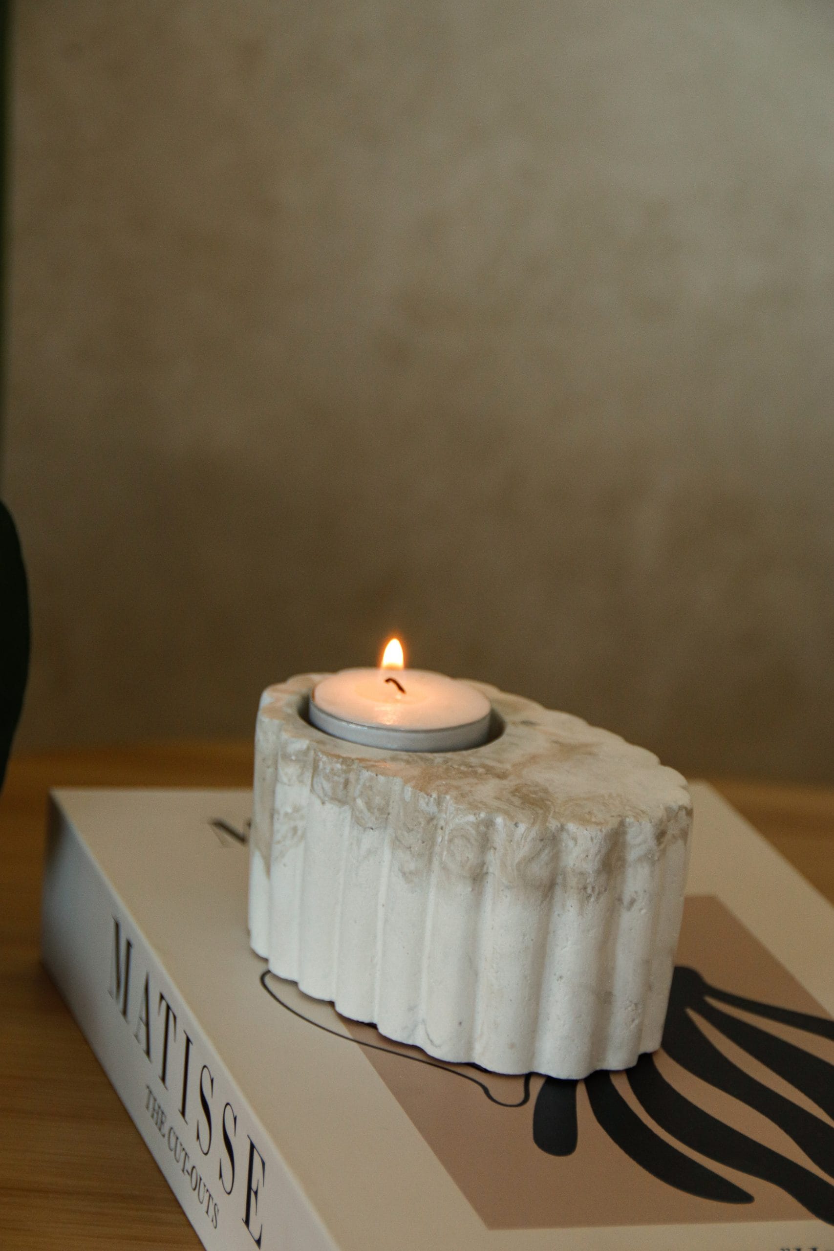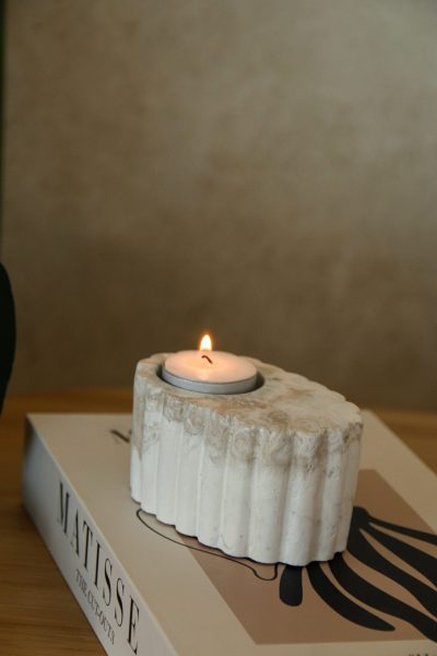 Bougeoir chauffe‑plat en ciment marbré