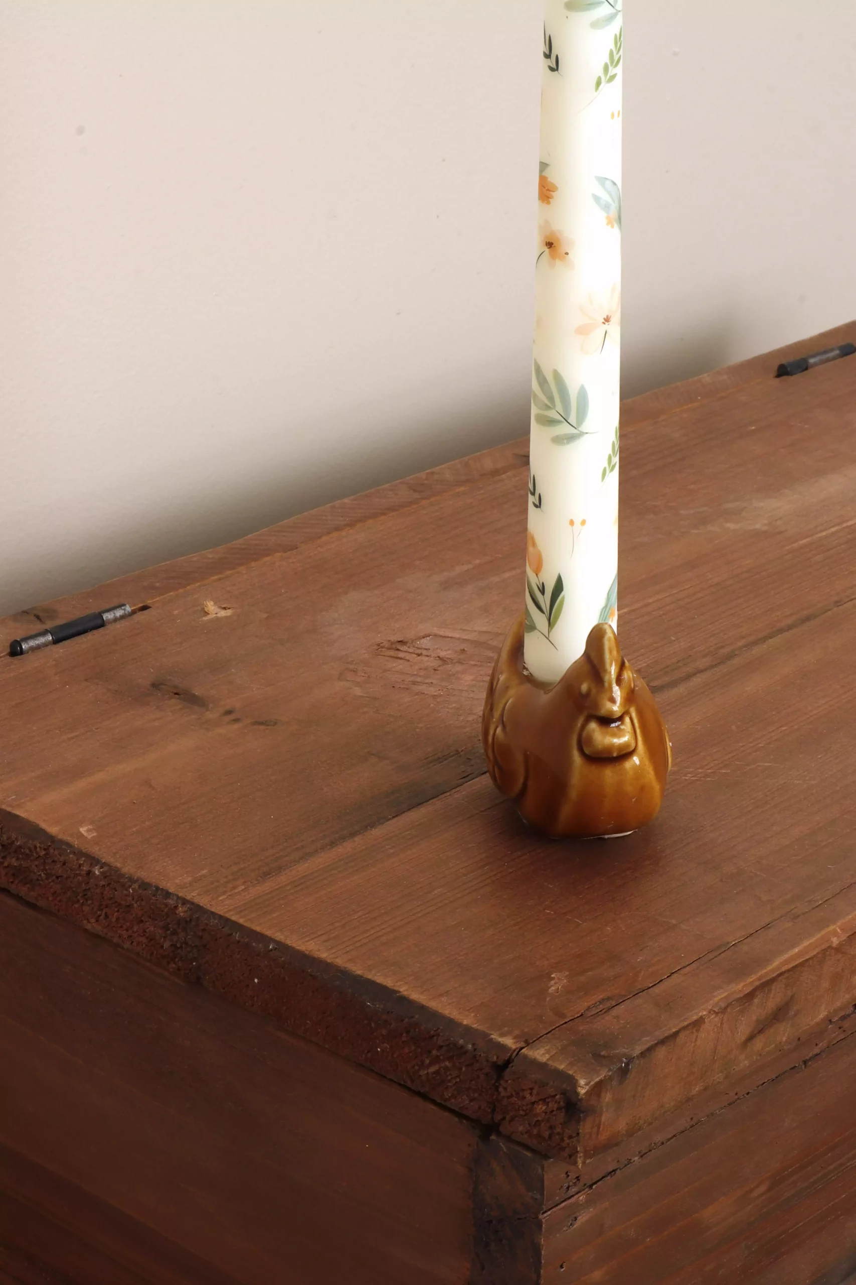 Adorable petit bougeoir en porcelaine émaillée en forme de poule, d’une jolie couleur marron. Conçu pour accueillir des bougies de 2 cm de diamètre, cet accessoire décoratif apporte une touche cosy et pleine de charme à votre intérieur. Parfait pour une ambiance automnale.