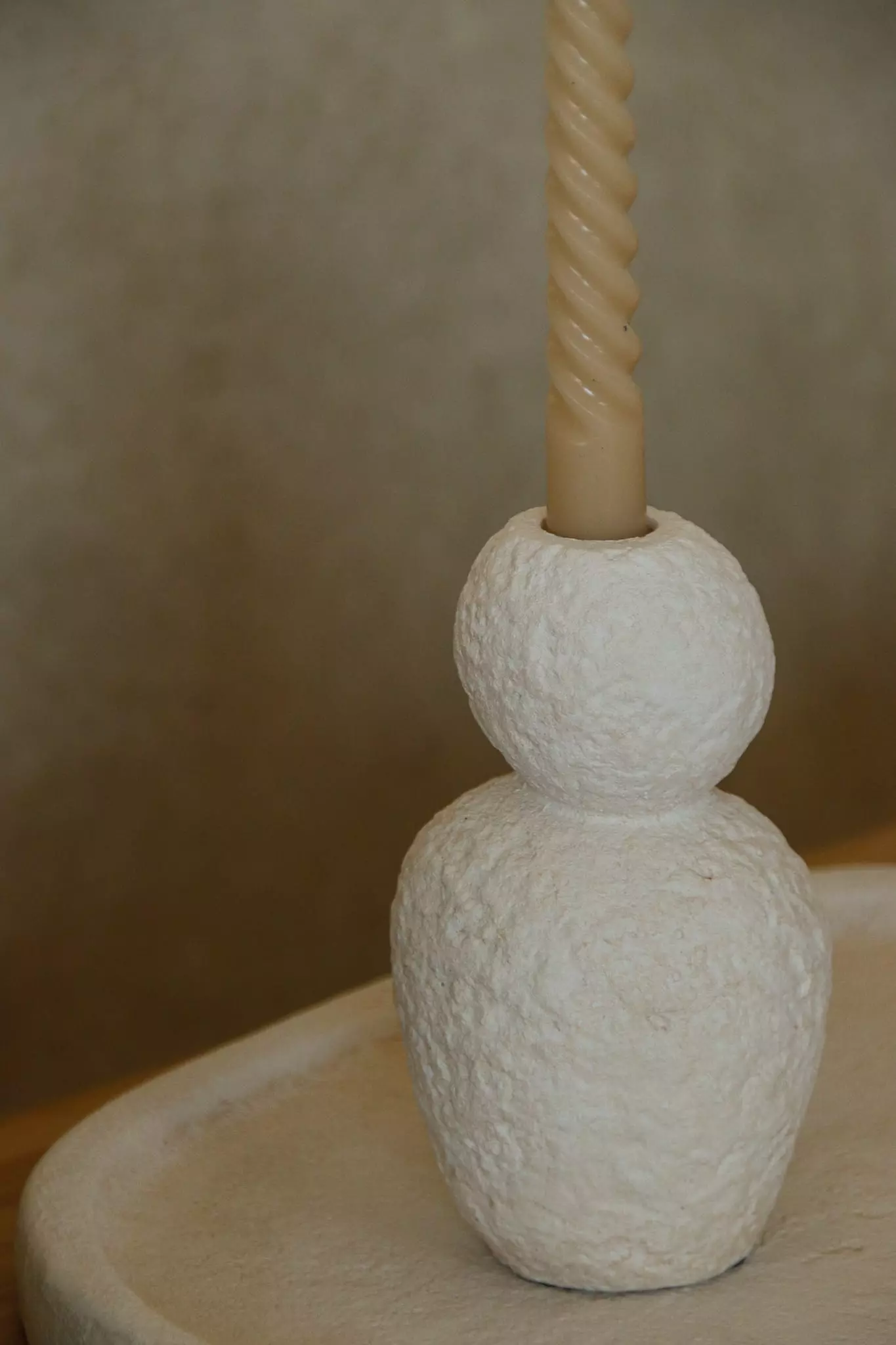 Apportez une touche contemporaine à votre intérieur avec ce bougeoir en ciment granuleux, composé de trois sphères superposées. Son design épuré et sa texture brute s’intègrent harmonieusement dans des ambiances minimalistes. Idéal pour créer une atmosphère chaleureuse et moderne, il met en valeur vos bougies mêmes colorées.