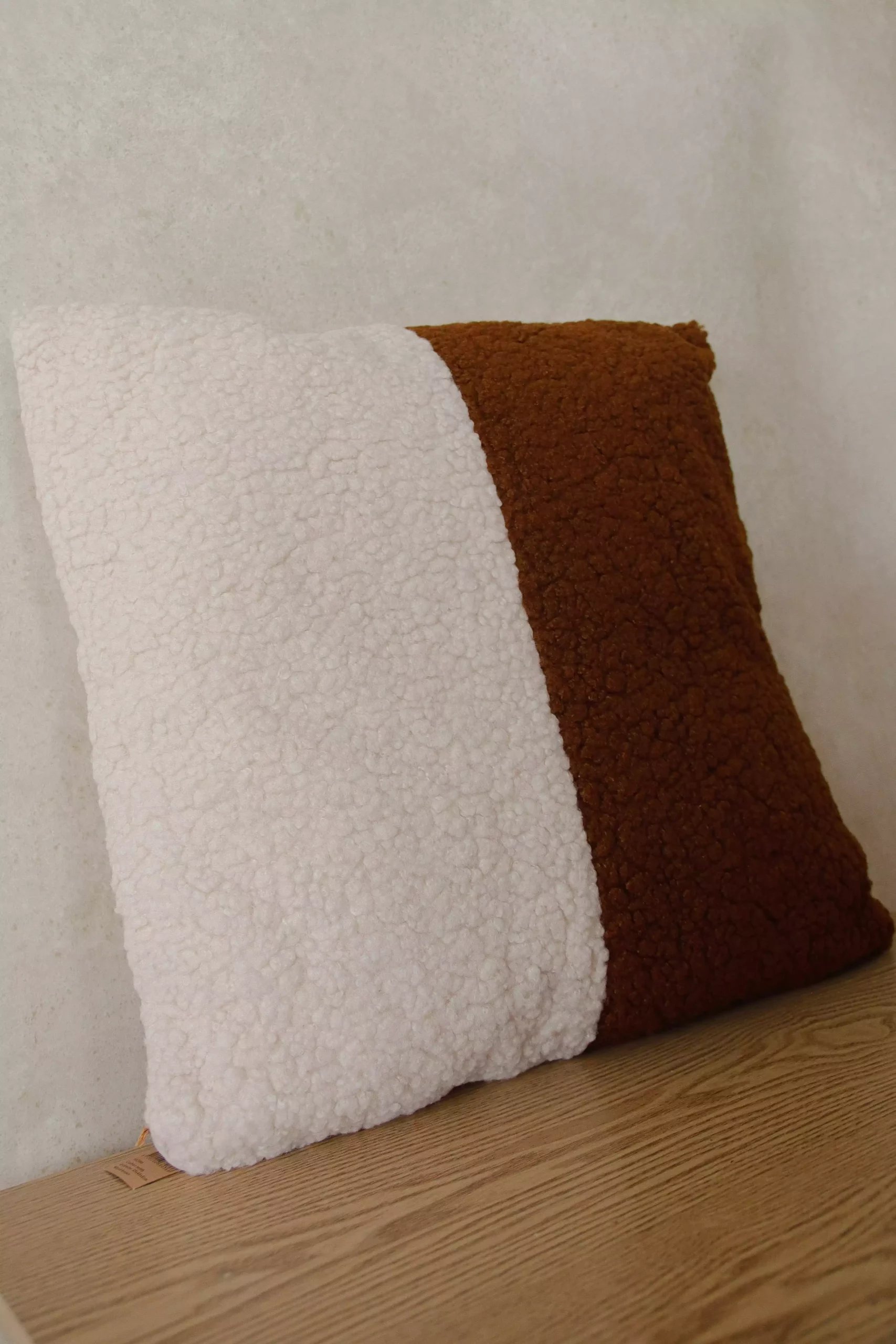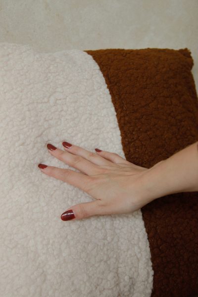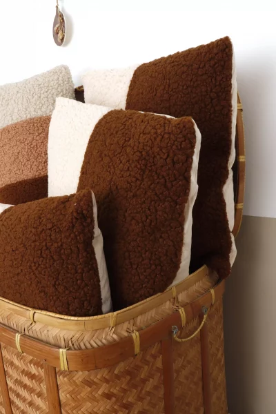 Coussin bouclette bicolore marron et blanc 45×45
