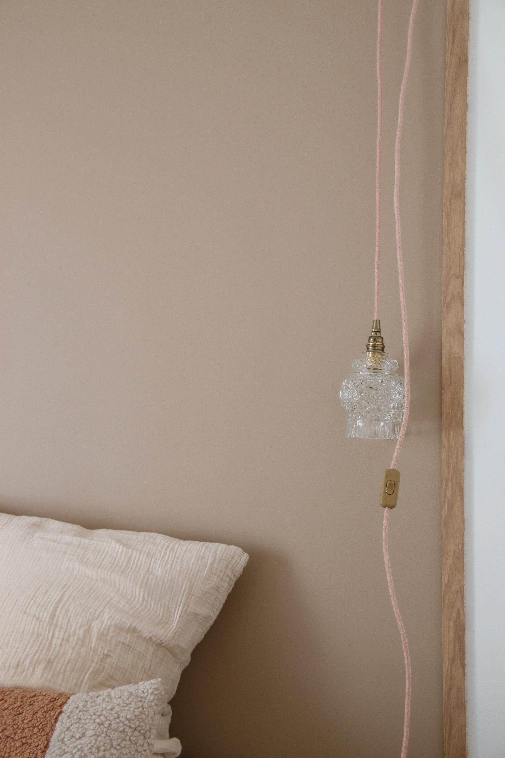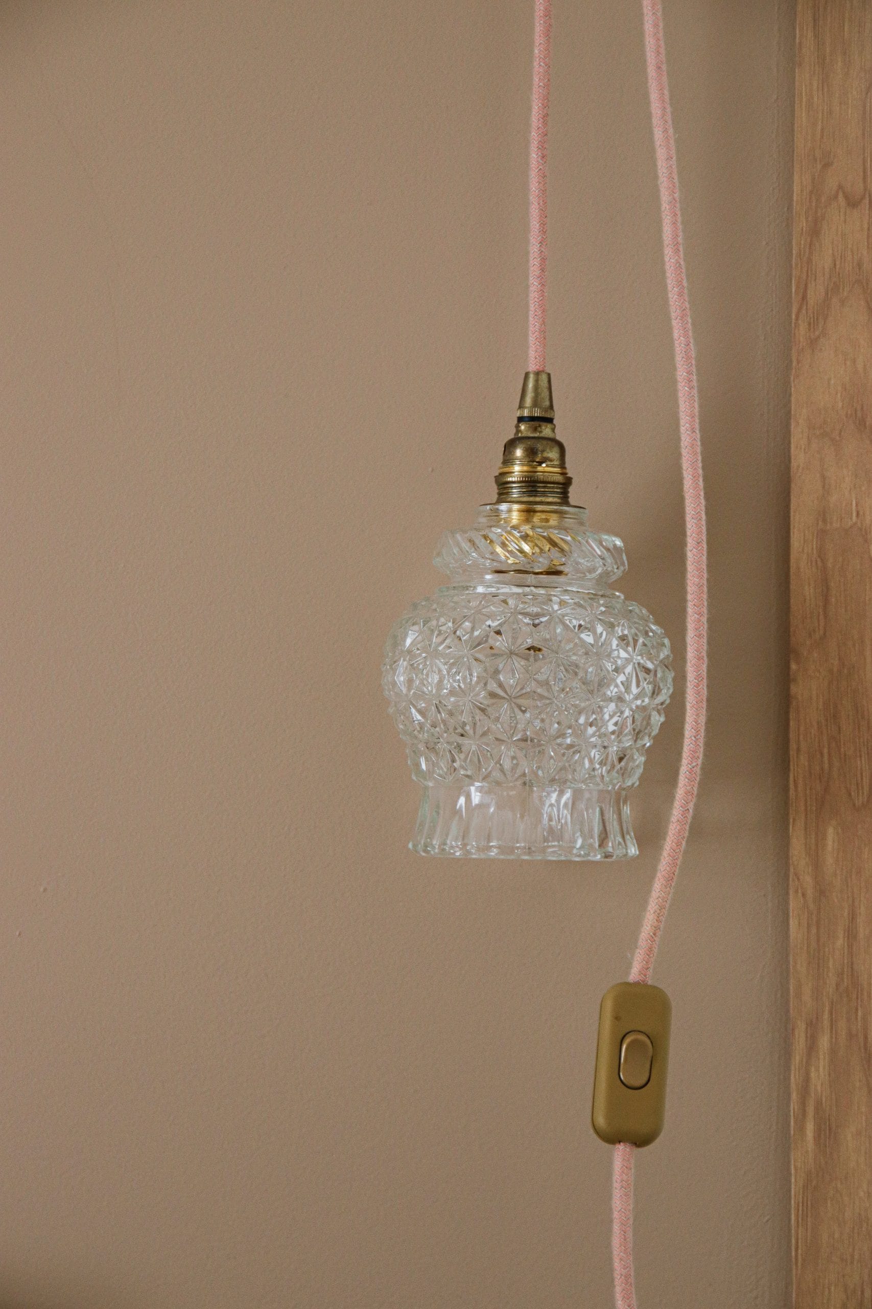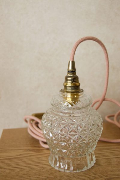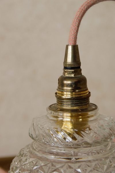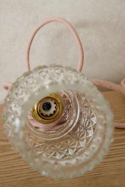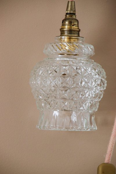 Paire de baladeuses avec abat-jour en verre ciselé câble vieux rose