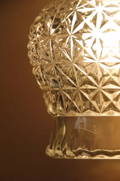 À noter : les globes en verre présentent de légers éclats sur les bords hauts, au niveau de l’insert de la douille, très peu visibles à l’œil nu. Ces imperfections n’affectent en rien l’esthétique générale. Pièces anciennes.
