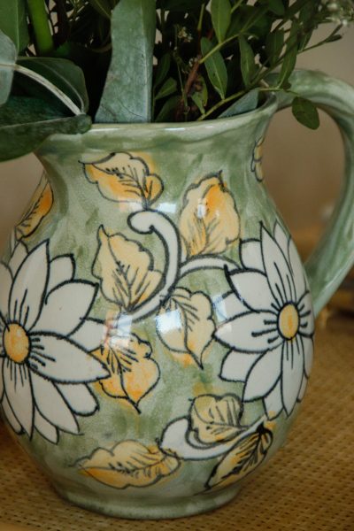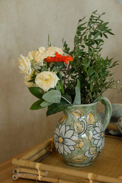 Pichet céramique vert aux fleurs délicates