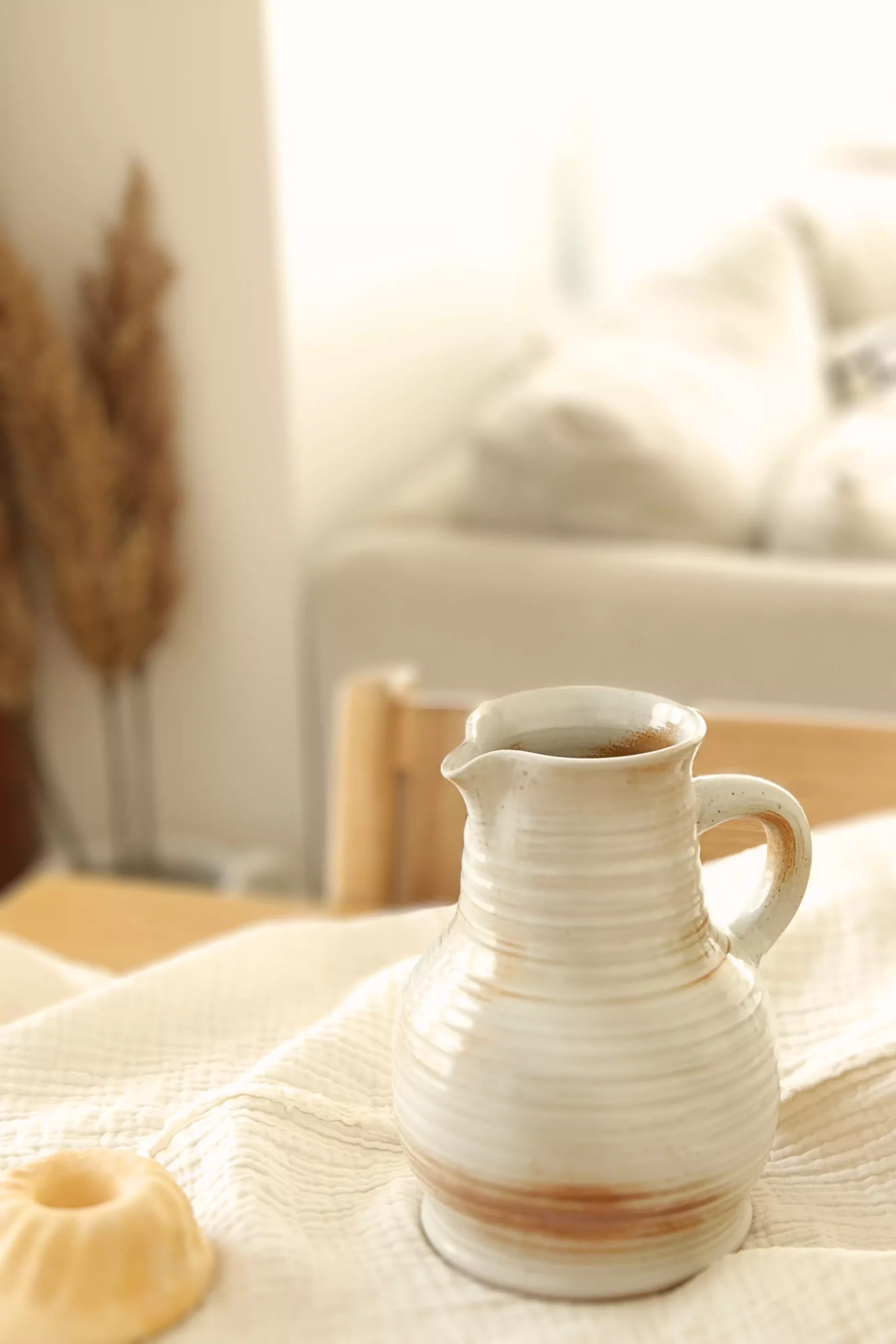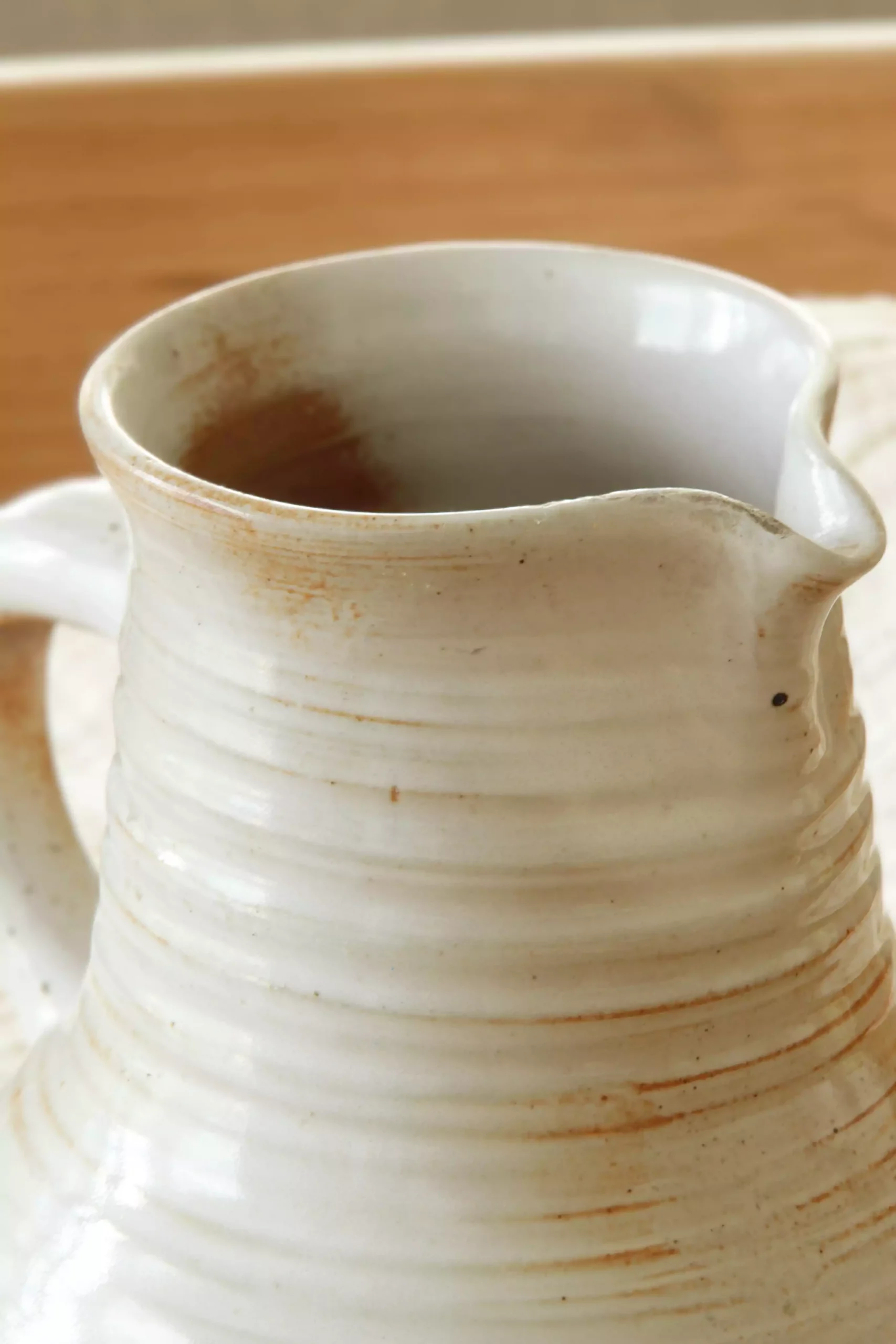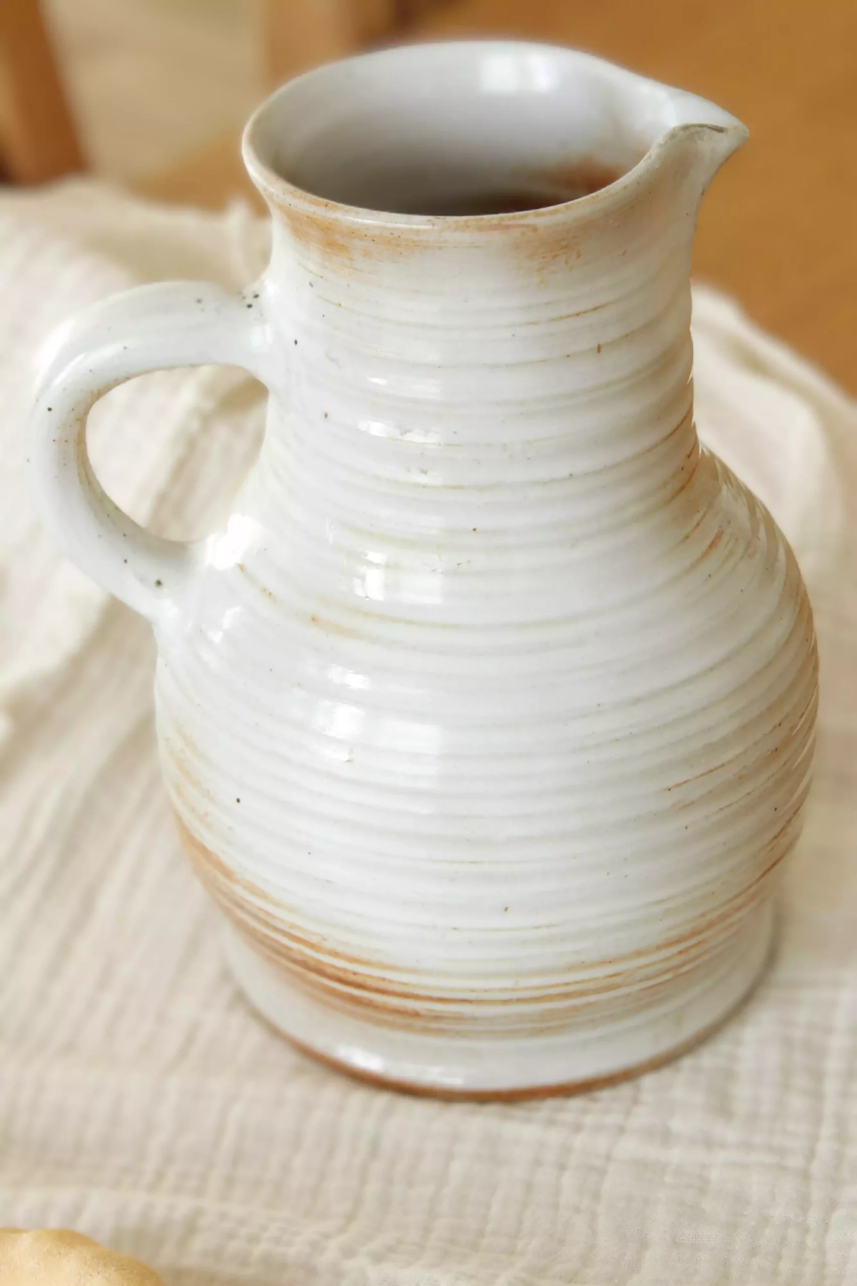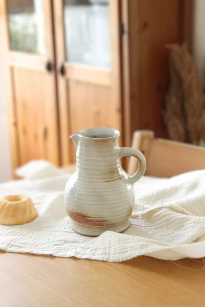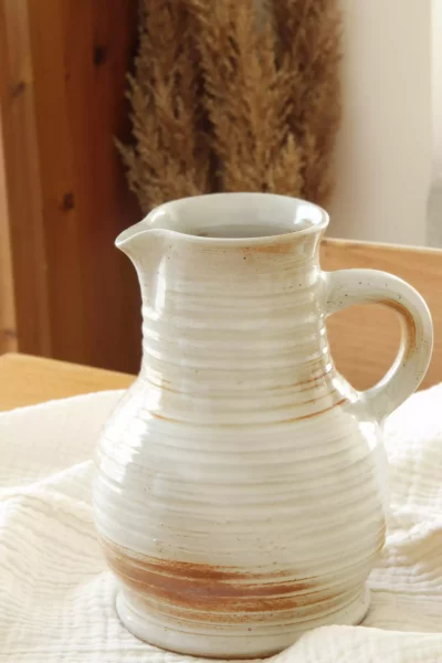 Ce pichet en grès piqueté, aux teintes beige avec un dégradé de marron, se distingue par ses stries apparentes. Témoignant de sa confection artisanale au tour. L’anse grande et fonctionnelle permet une prise en main facile, faisant de ce pichet un choix idéal pour servir vos boissons préférées. Parfait également comme vase, il apporte une touche de charme rustique à votre intérieur, mettant en valeur vos bouquets de fleurs fraîches ou séchées.