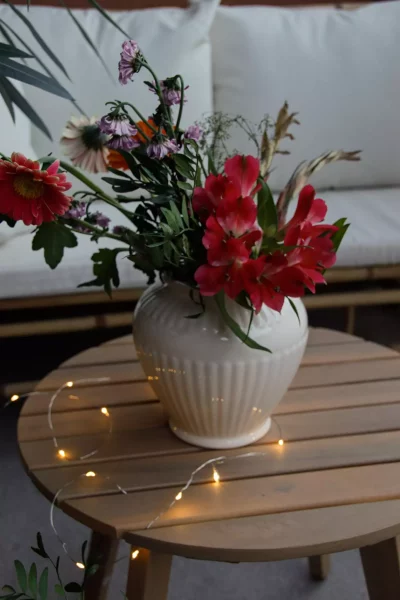 Un vase en céramique au coloris blanc cassé, orné de fines stries délicates. Sa forme flatteuse, légèrement évasée, capte l’attention tout en valorisant subtilement vos compositions florales.