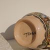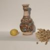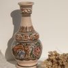 Vase artisanal tunisien peint à la main. Belle pièce très actuelle de par ses coloris ! Jolis motifs orientaux avec ce qu’on peut imaginer être des chameaux. Couleur rose nude en fond se rapprochant d’un beige.