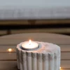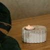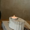 Bougeoir en ciment marbré, parfait pour une bougie chauffe‑plat. Compact, il tient bien en place, même à l’extérieur, grâce à une base lourde. Les stries tout autour apportent une texture simple et élégante, idéale pour jouer avec la lumière.