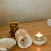Vous pouvez le disposer de plusieurs façons ill accueille une petite coupelle pour y déposer une senteur à brûler ou diffuser de l’huile essentielle. Le cylindre accueillera votre bougie et fera office de photophore pour une ambiance douce et tamisée.