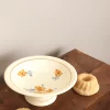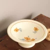 Très joli compotier surélevé en faïence, orné de motifs floraux peints à la main dans des tons orangés, ce qui lui confère un charme artisanal unique. Idéal pour présenter avec élégance vos mets, apéritifs ou même comme coupe à fruits, il ajoute une touche de raffinement à votre table.