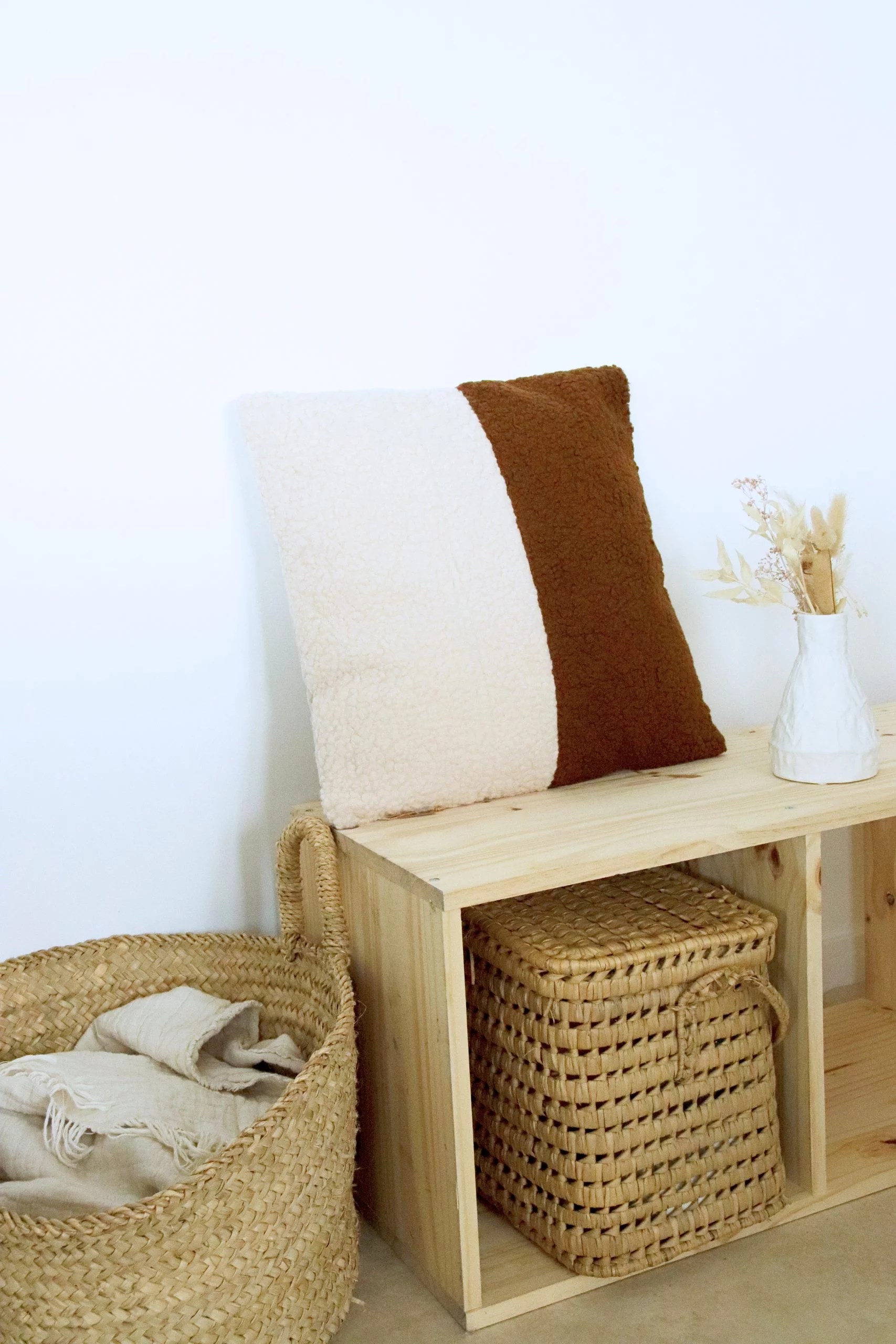 Coussin Carré Bicolore 45×45 en Tissu Bouclette