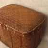 Grande malle en osier ancienne des années 70, en excellent état, qui allie charme et fonctionnalité. Son tressage croisé unique lui confère un caractère authentique original. Avec sa grande capacité, cette malle est idéale pour divers usages : elle peut servir de malle à jouets, permettant de garder les espaces de vie organisés et dégagés, ou être utilisée pour ranger plaids et coussins dans un grand séjour.
