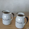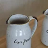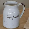 Lot de 2 pichets d’eau « Eau fraîche » en grès piqueté crème