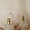 Paire de baladeuses avec abat-jour en verre ciselé câble vieux rose
