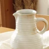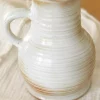 Ce pichet en grès piqueté, aux teintes beige avec un dégradé de marron, se distingue par ses stries apparentes. Témoignant de sa confection artisanale au tour. L’anse grande et fonctionnelle permet une prise en main facile, faisant de ce pichet un choix idéal pour servir vos boissons préférées. Parfait également comme vase, il apporte une touche de charme rustique à votre intérieur, mettant en valeur vos bouquets de fleurs fraîches ou séchées.
