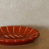 Ce plateau décoratif bordeaux et doré présente des bords ondulés et une finition vernis brillant qui met en valeur sa teinte chaleureuse. La dorure, légèrement passée par le temps, ajoute un charme vintage à l’ensemble. Idéal pour présenter des fruits, par exemple.