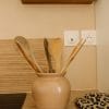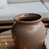 Apportez une touche artisanale et chaleureuse à votre intérieur avec ce magnifique vase en grès. À l’extérieur, sa texture mate brun terre séduit par son aspect authentique et naturel. À l’intérieur, le fini émaillé lisse offre une note raffinée, idéale pour sublimer vos fleurs tout en facilitant l’entretien. Sa forme élégante, à la fois harmonieuse et généreuse, lui confère une présence à la fois discrète et impactante.