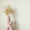 Vase torsadé rose texturé. Sa forme moderne s’adapte à tous les intérieurs. Avec ses deux inserts, pour encore plus de fleurs. Pour fraîches comme séchées; Matière légèrement poreuse à privilégier les fleurs séchées.
